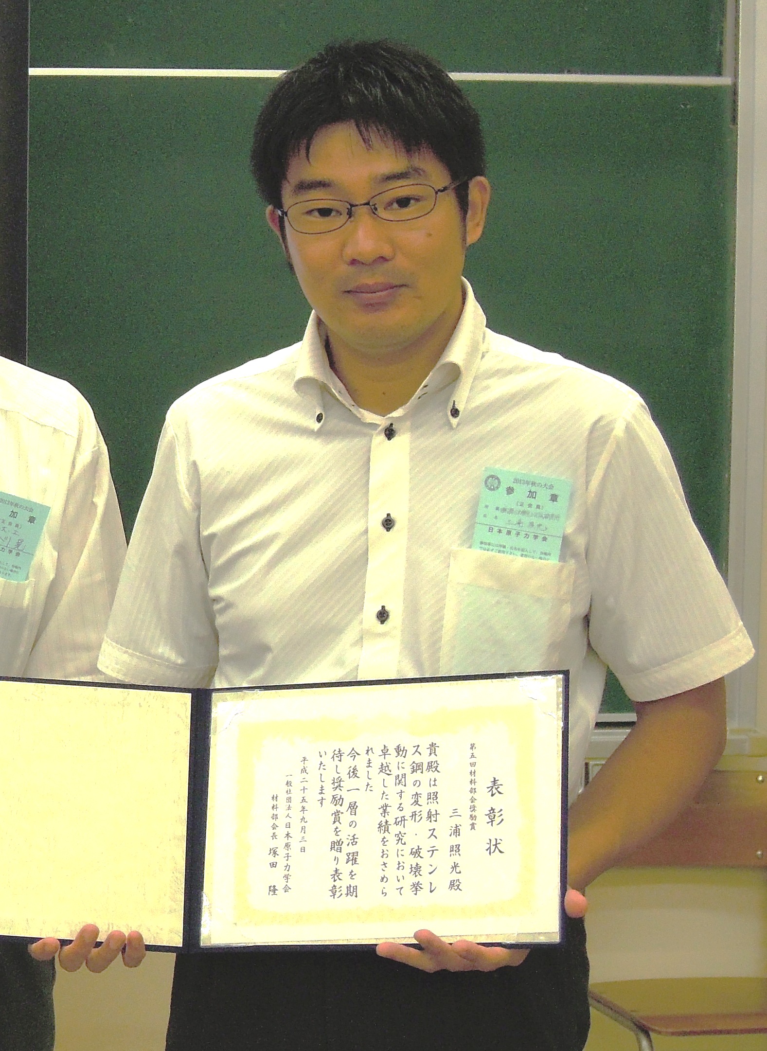 2013年9月、八戸工業大学に於いて開催された日本原子力学会 2013年秋の大会 材料部会総会にて、所員1名が「第5回日本原子力学会材料部会奨励賞」を受賞しました。